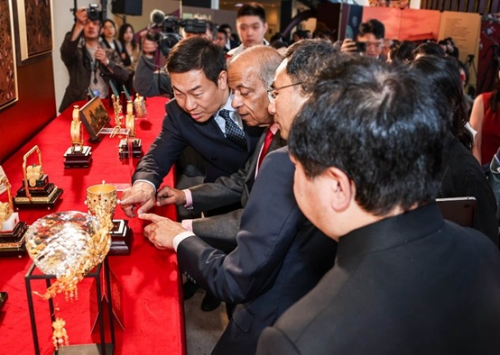 展览现场,融入宫廷纹样的残疾人文创、以非遗花丝工艺制作的饰品、助力乡村振兴等展品,将“和谐共生”“美美与共”的中华文化内核与联合国2030年可持续发展目标深度融合。嘉宾们通过体验首日封书写、传统工艺互动等环节,直观感受故宫文创如何以“文物活起来”赋能社会发展。