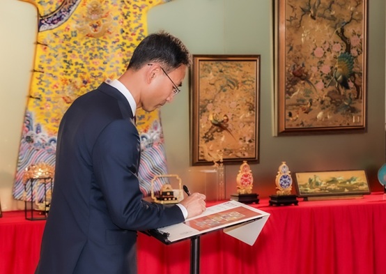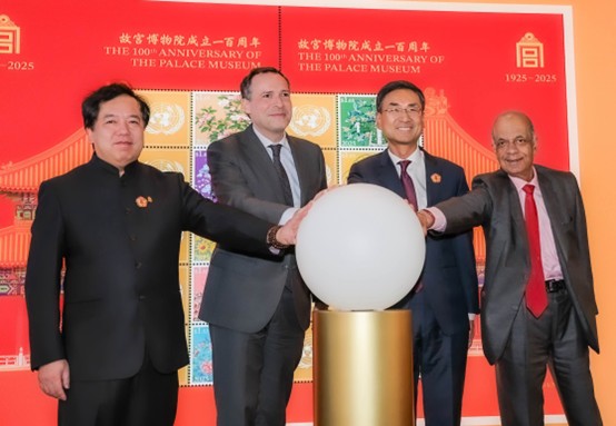 当地时间5月19日,“生生不息——故宫博物院成立100周年邮票发布仪式暨文创主题展”在纽约联合国总部举行。来自各国驻联合国大使、联合国各机构代表共120余人齐聚一堂,中华人民共和国常驻联合国代表团临时代办耿爽、联合国副秘书长阿图尔·哈雷、联合国教育、科学及文化组织纽约办事处主任艾略特·明钦伯格、故宫博物院副院长王跃工等嘉宾现场致辞,共同见证中华文化与世界文明的深度对话。