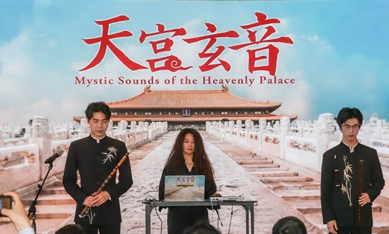 (从左至右)王思远、蒙柯卓兰、吕鑫共同演奏乐曲《天宫玄音》